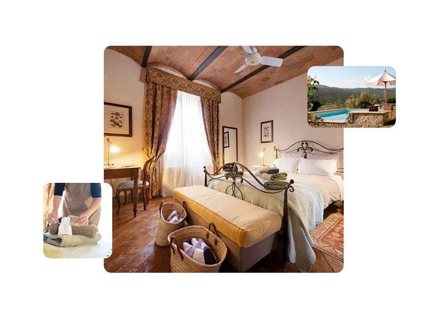 Nella Villa è possibile soggiornare affittandola in formula esclusiva ed è in grado di accogliere fino a 18 persone, soluzione ideale per famiglie o gruppi di amici, per vacanze, matrimoni o eventi speciali. La struttura può anche essere suddivisa in appartamenti, in configurazioni da 2, 4, 6, o 10 ospiti.